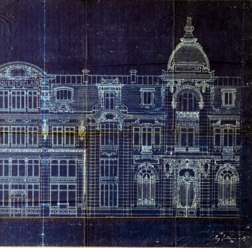 Construction du pavillon d'angle et d'une partie de la façade rue Pré-Botté : élévation antérieure (10 mars 1915).Immatriculation