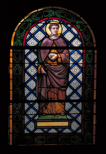 Ensemble de 6 verrières figurées : Sainte Hélène ; Saint Laurent ; Saint Etienne ; Saint Evêque ; Sainte Appoline ; Immaculée conception,
