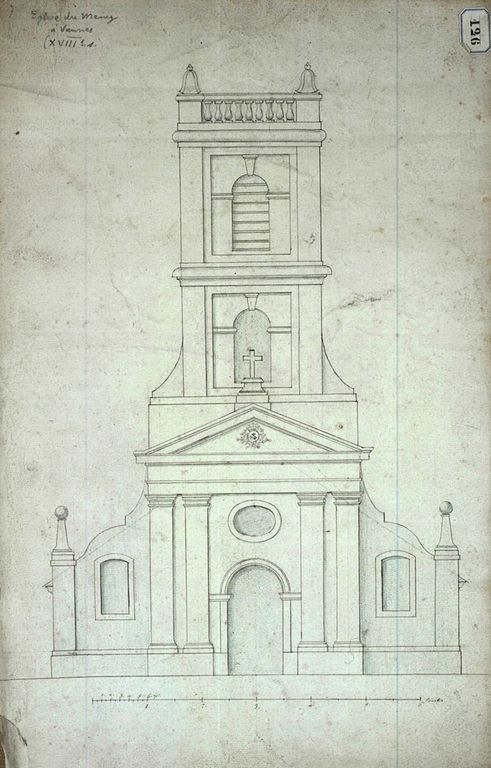 Projet d'élévation : façade ouest de l'église Saint-Patern (?),18e siècle. AD Morbihan 1 Fi 126.Immatriculation
