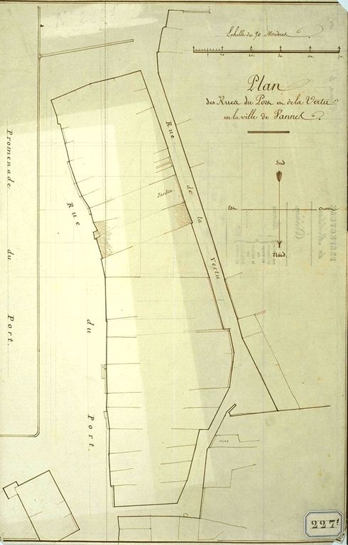 Plan de la rue du Port et de la Vertu, Brunet-Debaines, 1er 1/4 19e siècle. AD Morbihan 1Fi 227.Immatriculation