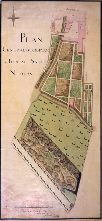 Plan de l'hôpital Saint-Nicolas. 18 frimaire an 12 (1803), Brunet-Debaines. AD Morbihan 1Fi 302.Immatriculation