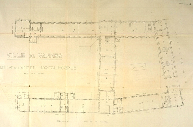 Plan de l'ancien hôpital-hospice, 1937. AD Morbihan 1Fi 309.Immatriculation