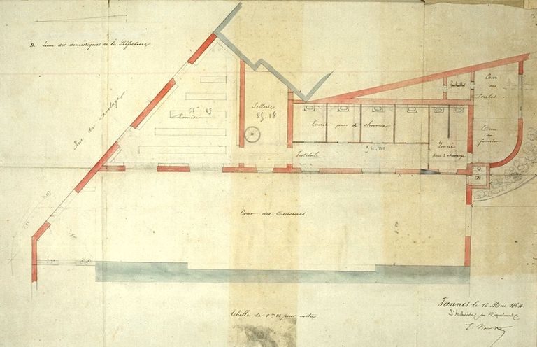 Nouvelle préfecture de Vannes. Ecuries et remises, plan par Narotte, 1864. AD Vannes 1 Fi 314/2.Immatriculation