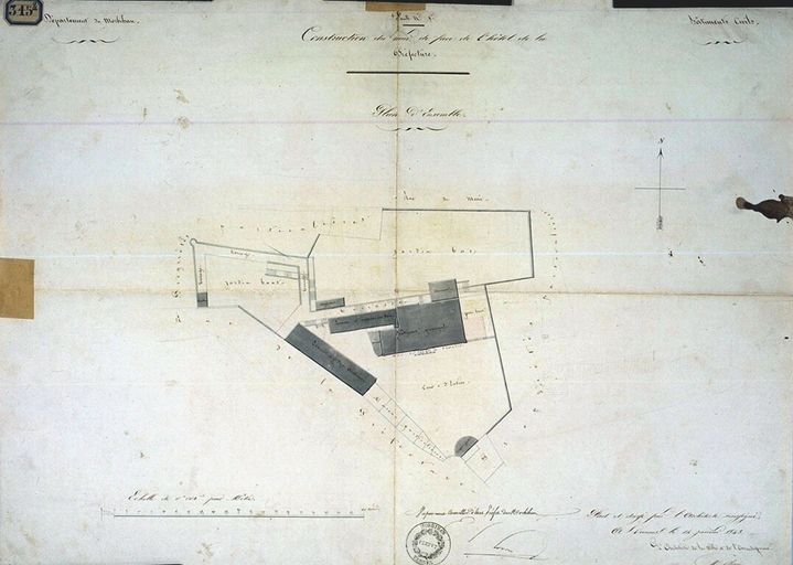 Construction du mur de face... Plan d'ensemble par Charier, 1842. AD Morbihan1 Fi 315/1.Immatriculation