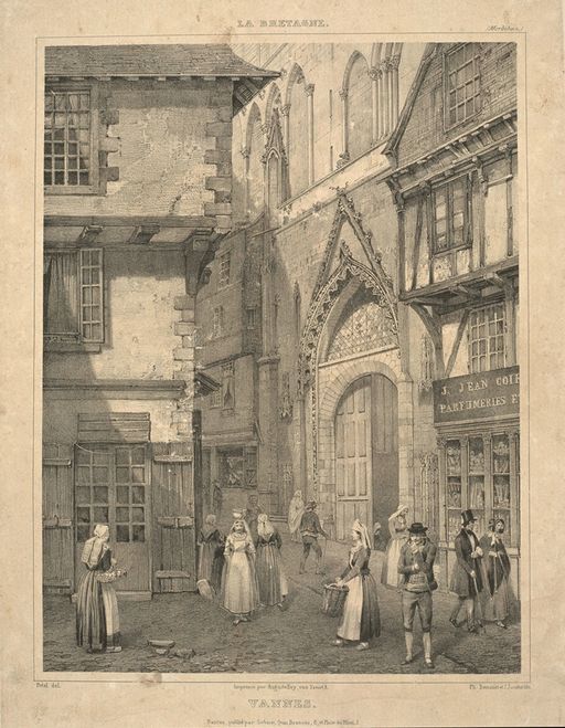 La cathédrale, portail ouest. Dessin par Potel, milieu 19e siècle. AD Morbihan 2 Fi 612.Immatriculation