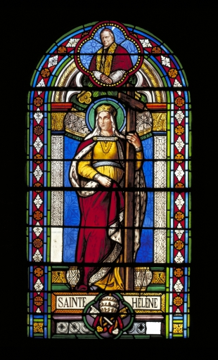 Ensemble de 6 verrières figurées : Sainte Hélène ; Saint Laurent ; Saint Etienne ; Saint Evêque ; Sainte Appoline ; Immaculée conception,