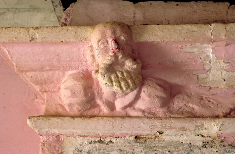 Ferme construite au début du 19e siècle. Cheminée ouest en remploi, détail du linteau : buste d'homme.Immatriculation