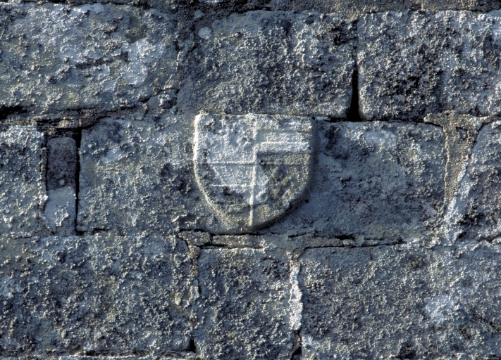 Chevet, blason des Rimaison au dessus de la baie.Immatriculation