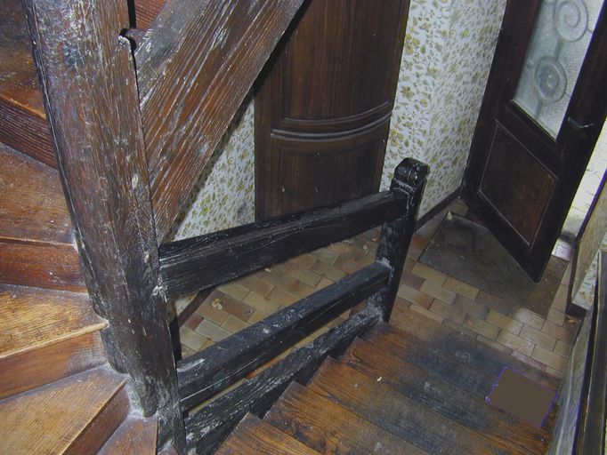 Escalier. Vue du palier vers le bas.Immatriculation
