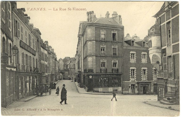La rue Saint-Vincent et place du poids public. Vers 1910. Carte postale L. Allioux. Collection particulière.Immatriculation