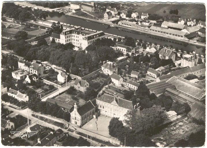 L'école Sainte-Anne. Vue aérienne vers 1950. Carte postale Artaud, Nantes, éd. Gaby. Collection particulière.Immatriculation