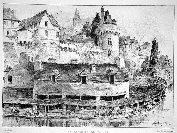 Partie est et lavoirs, dessin de Robida, 1890. AD Morbihan 2 Fi 210.Immatriculation
