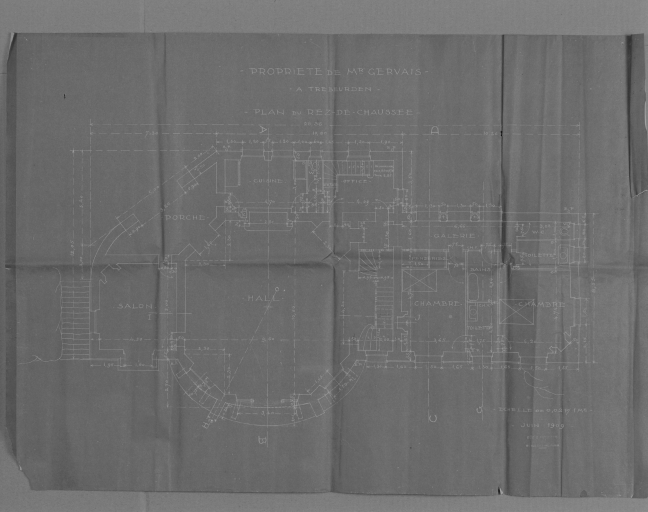 Propriété de M. Gervais à Trébeurden, plan du RDC, par Louis Süe et Paul Huillard, juin 1909Immatriculation
