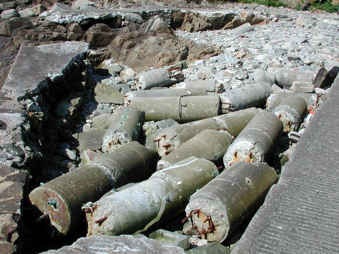 Vue des vestiges de la première cale est de l'île aux MoinesImmatriculation