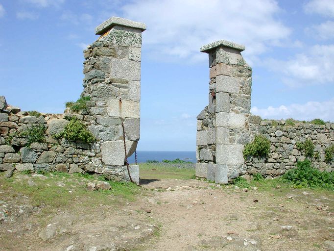 Ouvrages d'entrée du fort : fossé, enceinte en redan, porte, Ile aux Moines, fort, les Sept-Iles (Perros-Guirec),