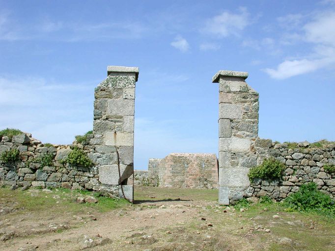 Ouvrages d'entrée du fort : fossé, enceinte en redan, porte, Ile aux Moines, fort, les Sept-Iles (Perros-Guirec),
