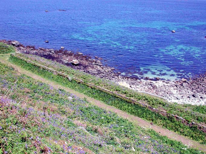 Chemin de ronde Nord reliant la grande batterie de Cosmoguer, la caserne et le fort, Ile aux Moines, les Sept-Iles (Perros-Guirec),