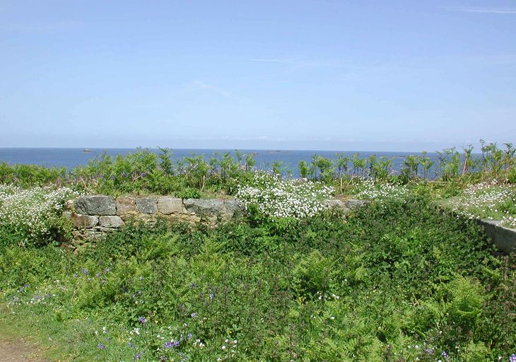 Chemin de ronde Nord reliant la grande batterie de Cosmoguer, la caserne et le fort, Ile aux Moines, les Sept-Iles (Perros-Guirec),