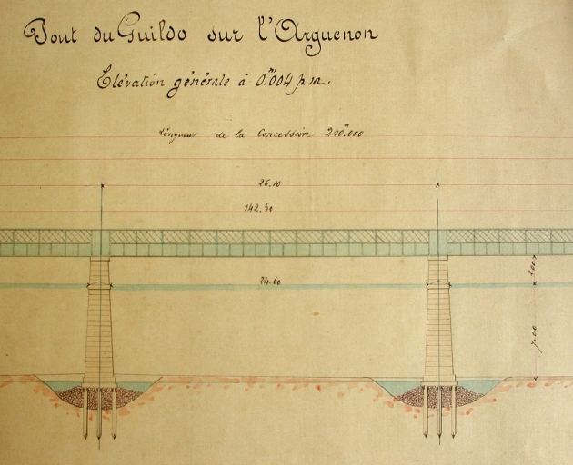 Détail de l'élévation du pont avant 1904 (Coll. DDE, AD 22).Immatriculation