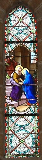 Ensemble de deux verrières figurées : sainte Anne, saint Joachim et la Vierge (baie 3) et l'Annonciation (baie 4),