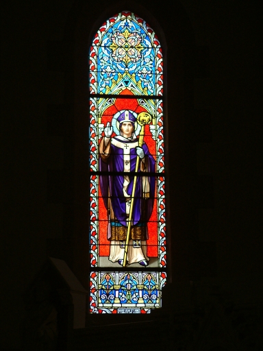 Ensemble de trois verrières figurées : sacré coeur, saint Lunaire, saint Clément,