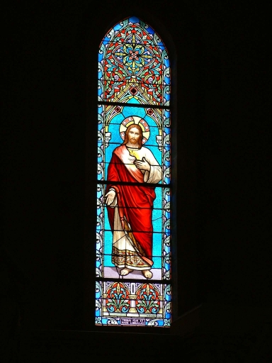 Ensemble de trois verrières figurées : sacré coeur, saint Lunaire, saint Clément,