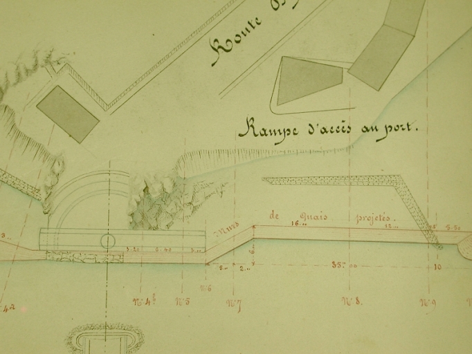 Plan du projet d'aménagement de la rampe d'accès au port du Guildo en 1869 (Coll. DDE / AD 22).Immatriculation