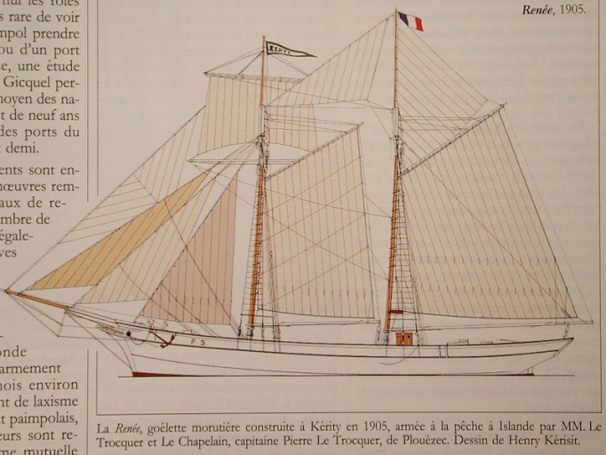 Plan de la goélette René, 1905, chantier Bonne-Lesueur (Dessin de Henry Kérisit)Immatriculation