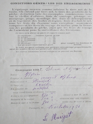 Lettre d'engagement d'un marin de la GlycineImmatriculation