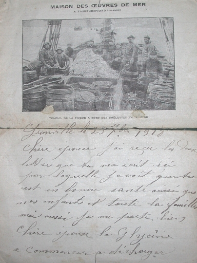 Courrier de Allain Le Cavorzin, à bord de la Glycine, le 23 juillet 1918, déchargeant au port de GranvilleImmatriculation
