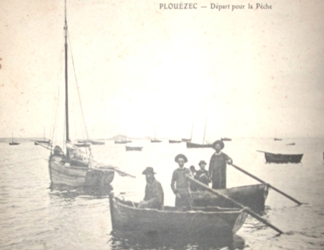 Vue : départ de pêche (carte postale, collection Couleau)Immatriculation