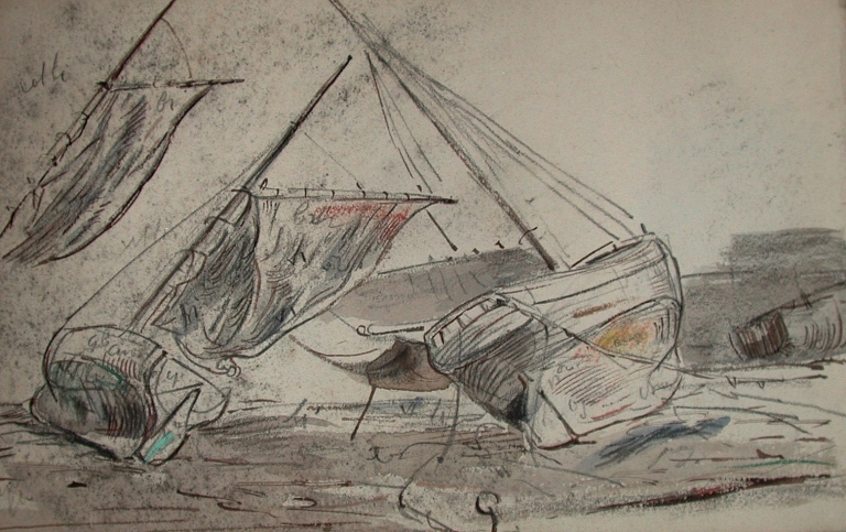 Vue : bateaux de pêche fin 19e siècle (Faudacq)Immatriculation
