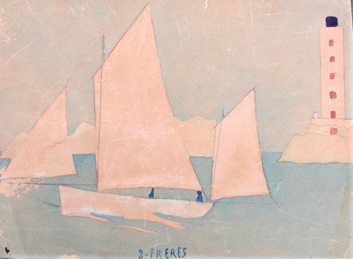 Dessin du bateau : les deux frères de la famille GagneImmatriculation