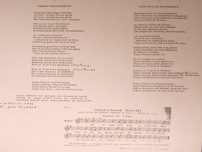 Chanson en Breton du marin Yves Richard : Les filles de Kérity, 1891Immatriculation