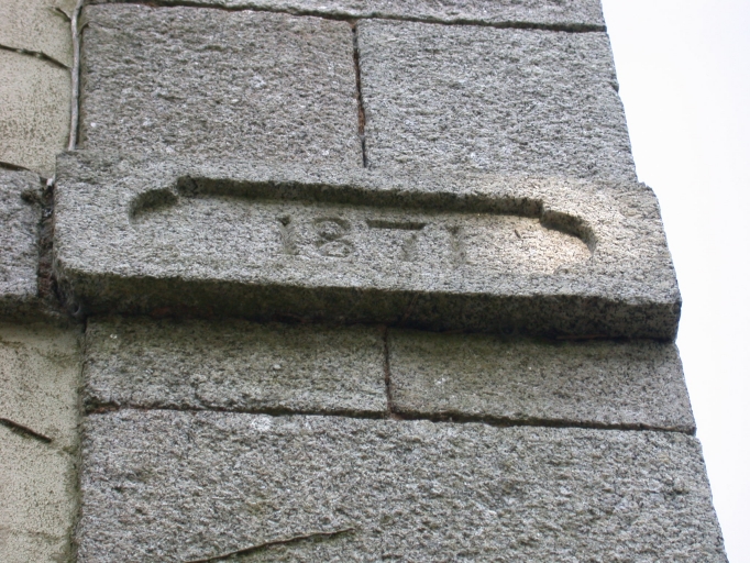 Pignon ouest de la minoterie, date portée : 1871.Immatriculation