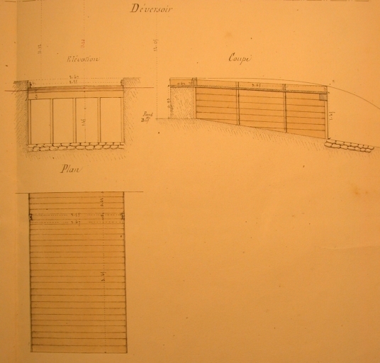 Déversoir : élévation, coupe et plan (12 juin 1856).Immatriculation