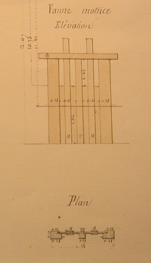 Vanne motrice : élévation et plan (12 juin 1856).Immatriculation