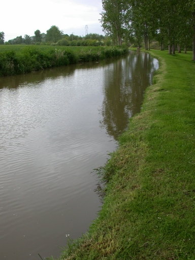 Bief d'amont et vannage de décharge, au fond.Immatriculation