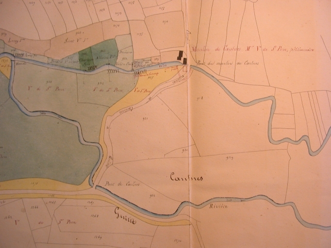 Plan de situation extrait du réglement d'eau du moulin (31 octobre 1855).Immatriculation
