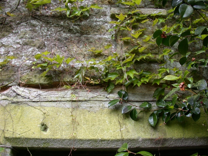 Blason et inscription originales figurant sur le pignon nord du moulin.Immatriculation