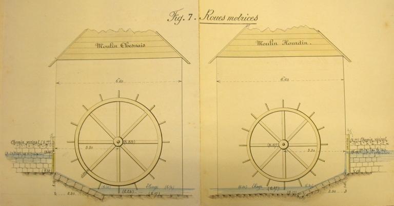Elévation des roues hydrauliques verticales des deux moulins (19 décembre 1891).Immatriculation