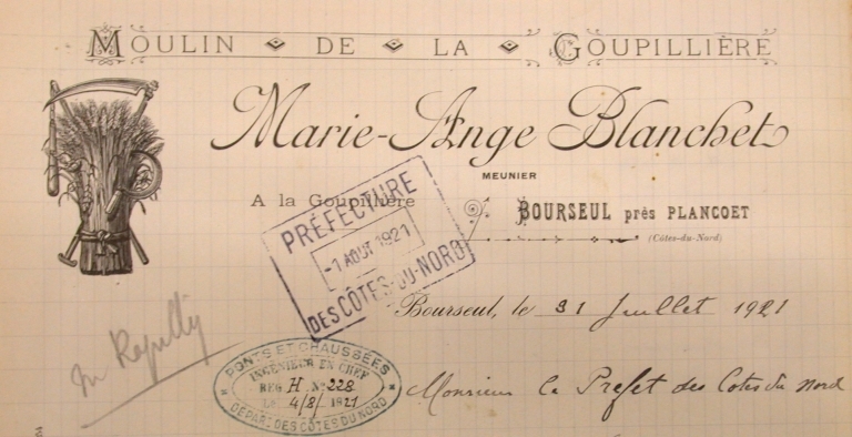 En-tête de papier daté du 31 juillet 1921.Immatriculation