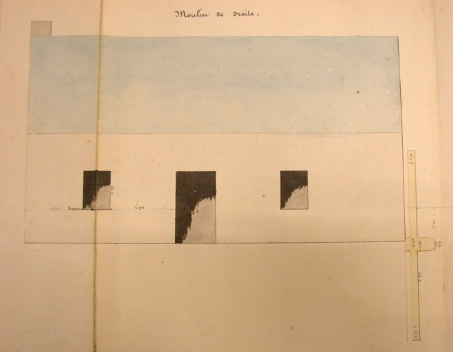 Elévation de la façade antérieure du Moulin Neuf (25 janvier 1859).Immatriculation