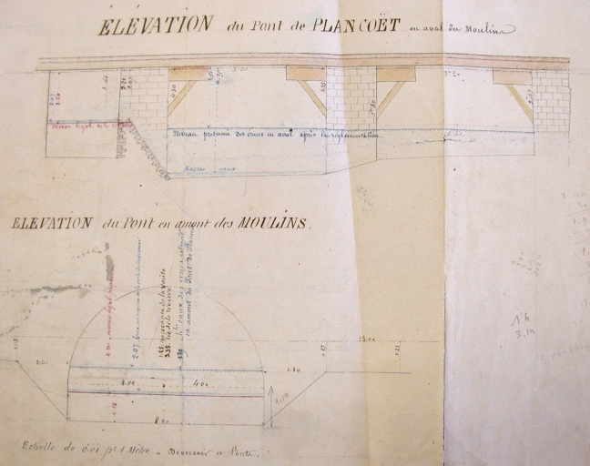 Elévations des ponts aval et amont des moulins de Plancoët (25 janvier 1859).Immatriculation