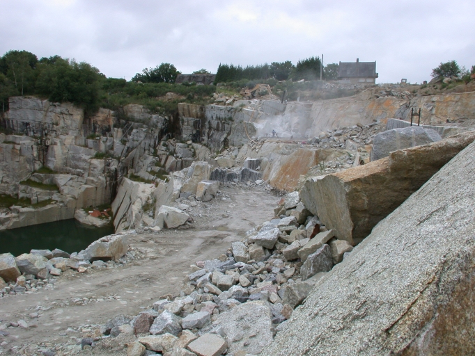 Carrière de granite Belgi, puis carrière et usine de taille de matériaux de construction Rioche, route départementale 766 (Bobital),