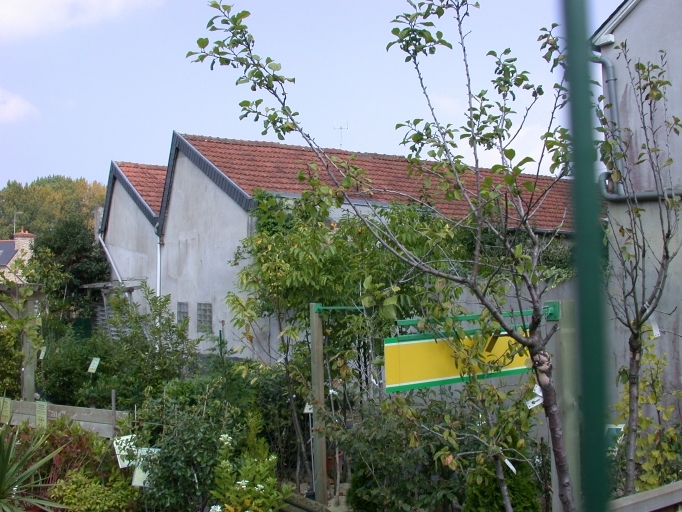 Détail des sheds couverts de tuiles mécaniques.Immatriculation