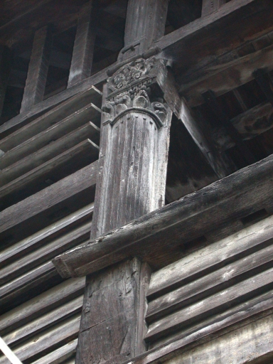 Séchoir : détail d'une colonne à chapiteau corinthien.Immatriculation