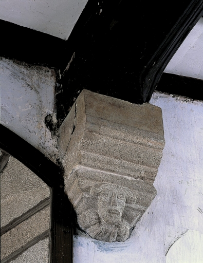 Rez-de-chaussée, salle ouest, support de poutre, détail sculptéImmatriculation