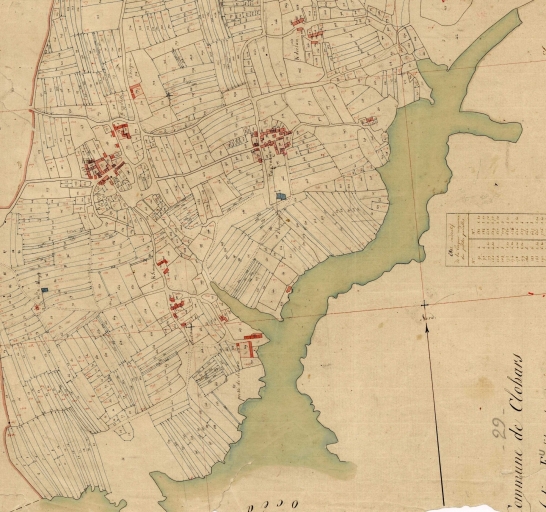 L'anse de Doëlan, rive ouest. Extrait du cadastre de 1823, section F (A.D. Finistère, 3 P 101)Immatriculation