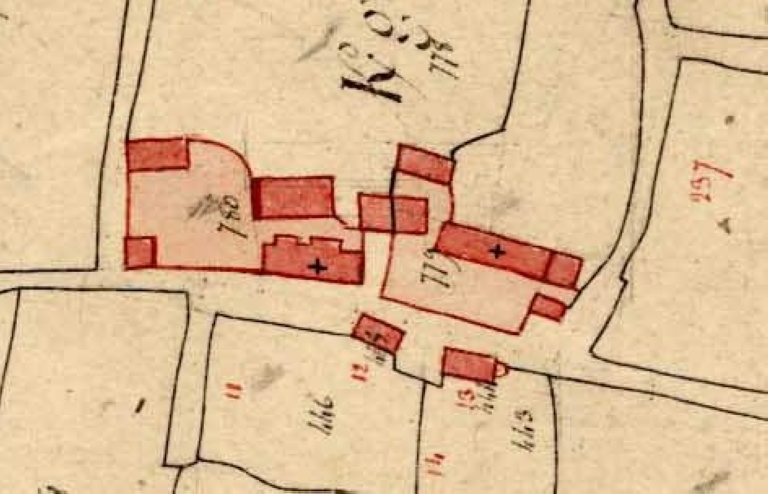 Extrait du cadastre de 1823, section G2. La grange se situe en haut, à gauche (A.D. Finistère, 3 P 101)Immatriculation
